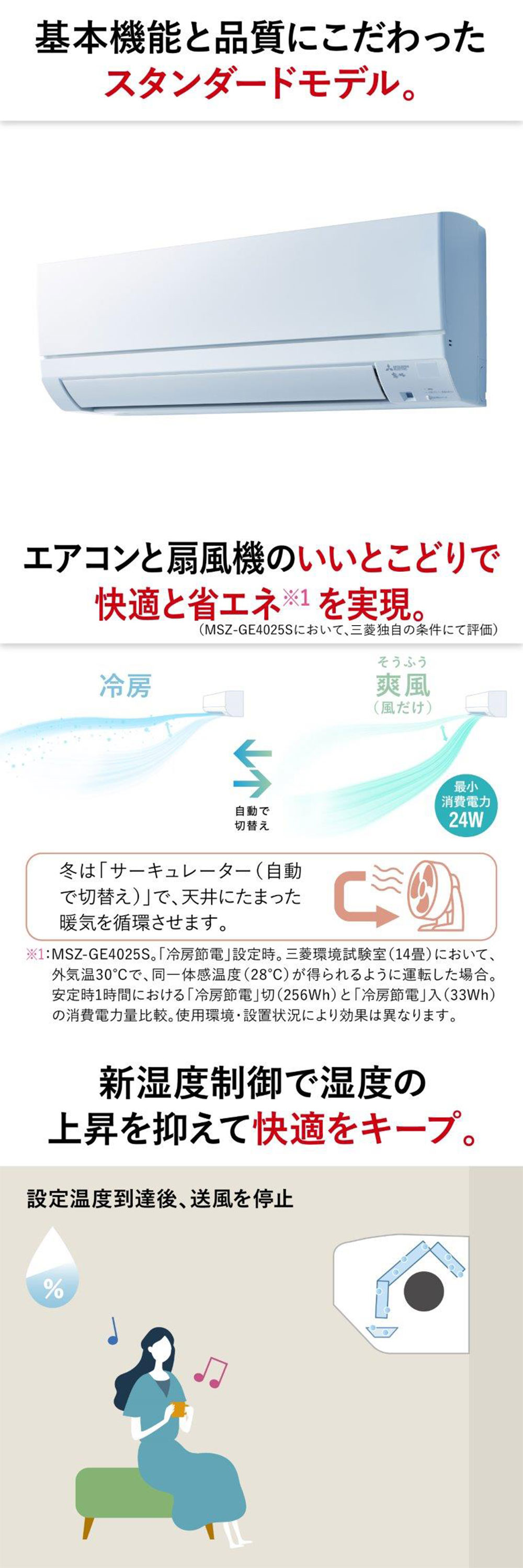 MITSUBISHI MSZ-GE4025S-W ピュアホワイト 霧ヶ峰GEシリーズ [ルームエアコン (主に14畳用・単相200V)]【まとめ買い対象B】