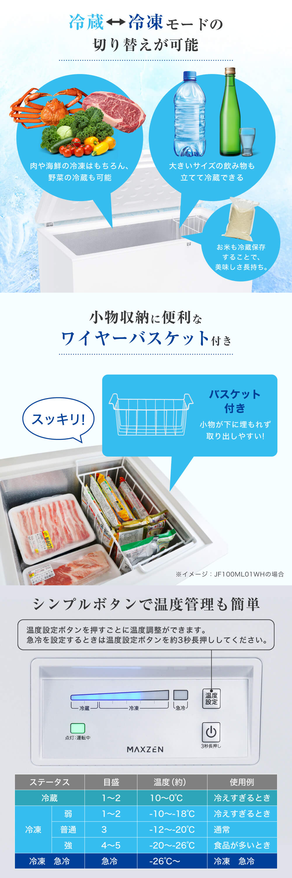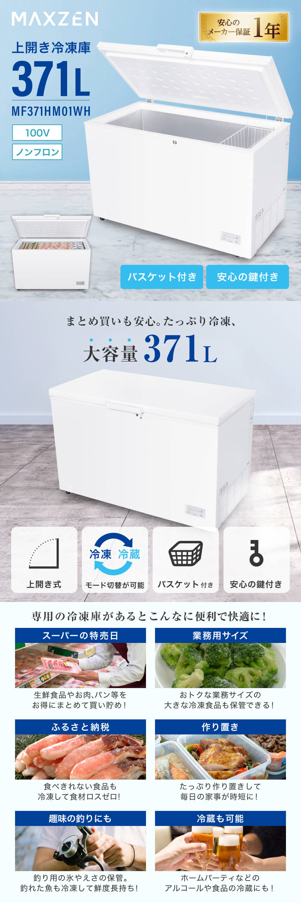 MAXZEN MF371HM01WH ホワイト [冷凍庫(371L・上開き)]
