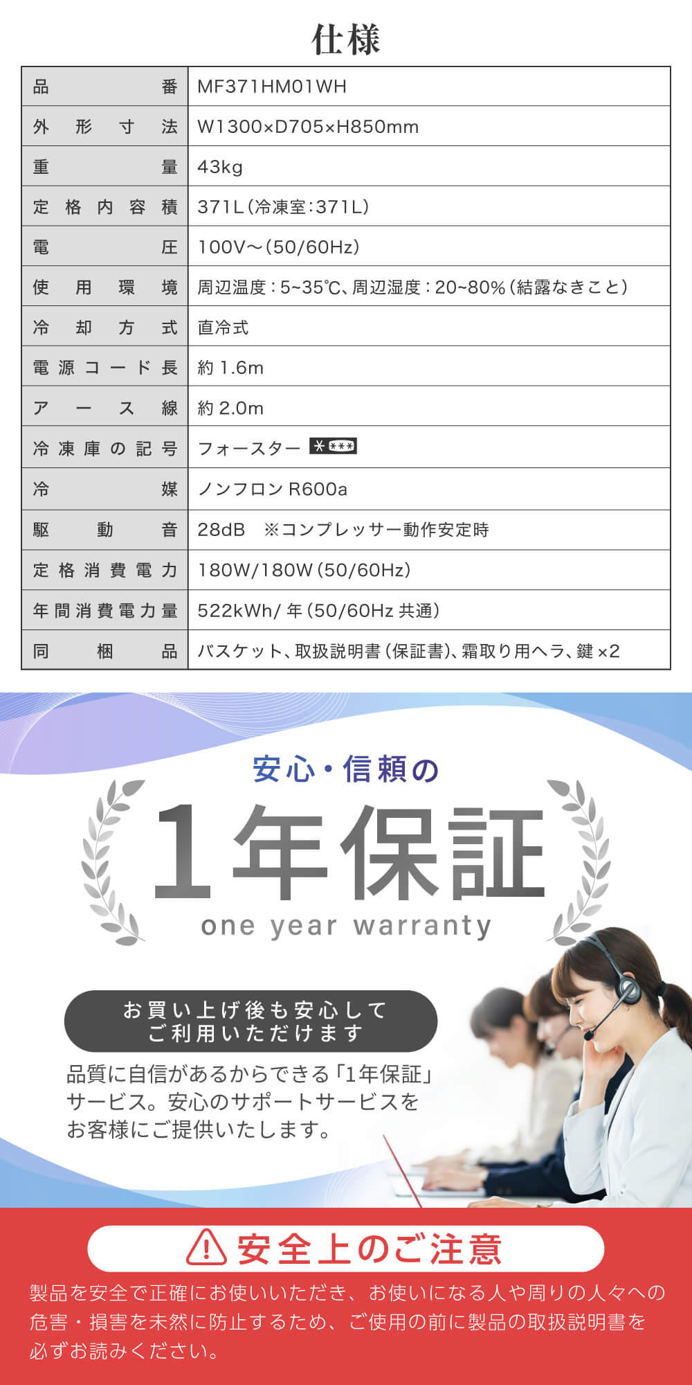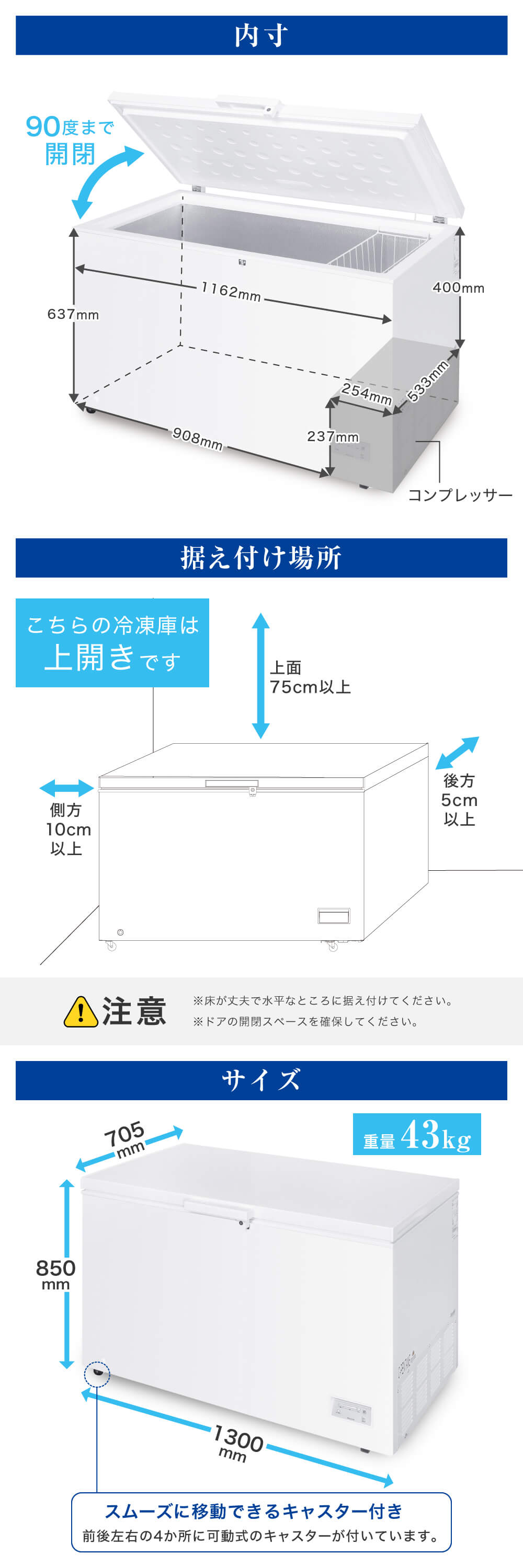 * 同梱品: バスケット、取扱説明書(保証書)、霜取り用ヘラ、鍵×2