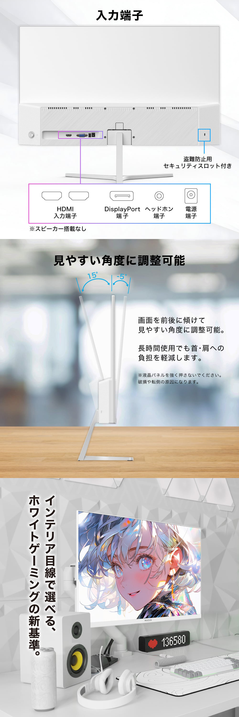 置いた瞬間、 デスクが完成する。ホワイトモニターがつくる上質なゲーム空間。