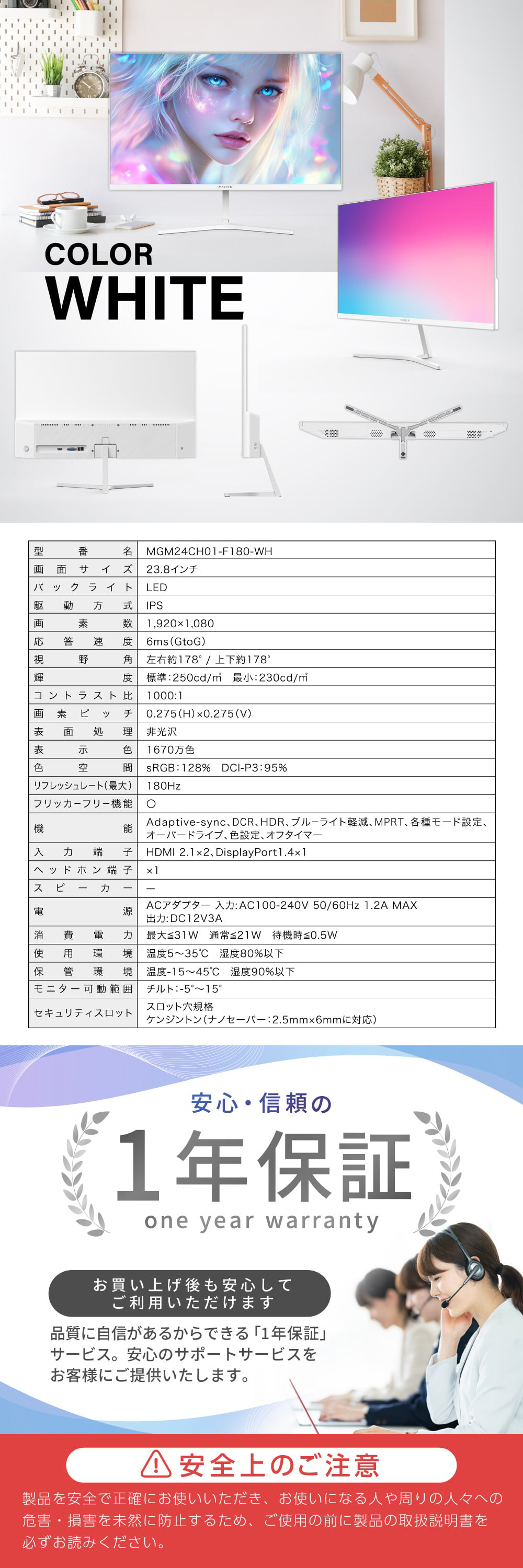 MAXZEN MGM24CH01-F180-WH ホワイト [23型 液晶ディスプレイ]