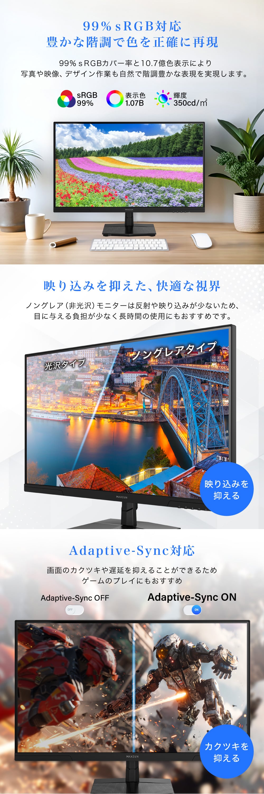 ★ 99% sRGB対応 豊かな階調で色を正確に再現