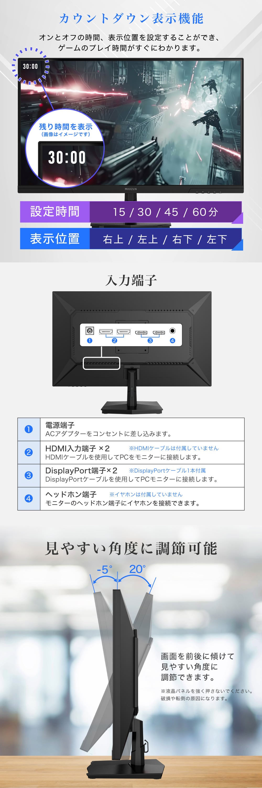 * モニター可動範囲: チルト:-5°~20° ±2°