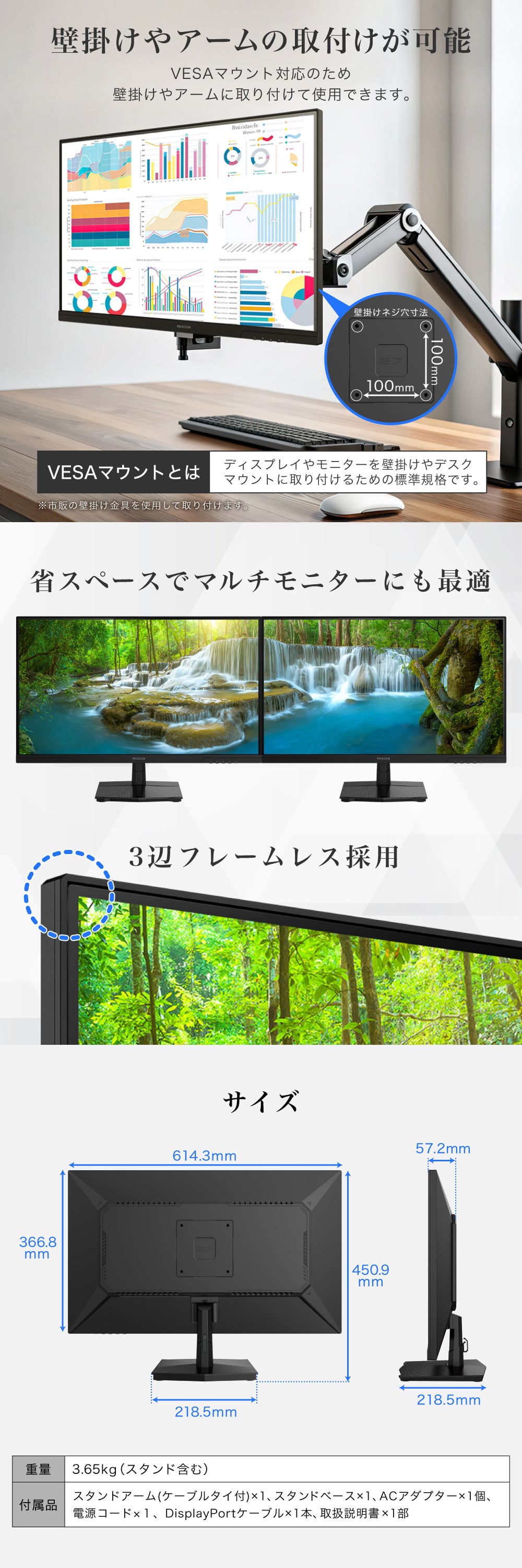 ★ 省スペースでマルチモニターにも最適/3辺フレームレス採用