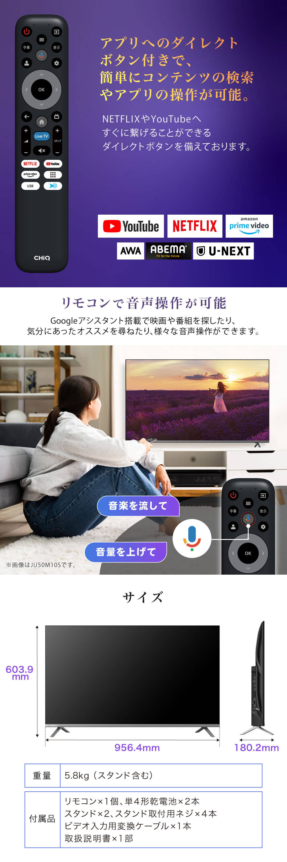 CHiQ JU43M10S [43インチチューナーレス 4K 液晶テレビ]