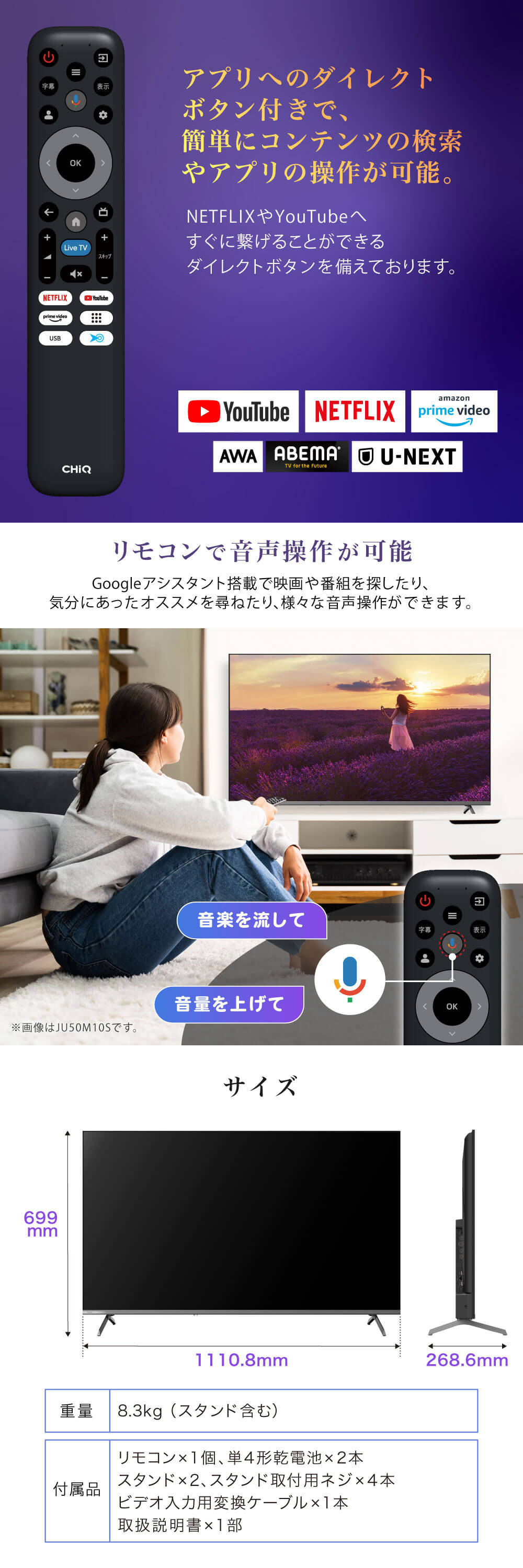 CHiQ JU50M10S [50インチチューナーレス 4K 液晶テレビ]