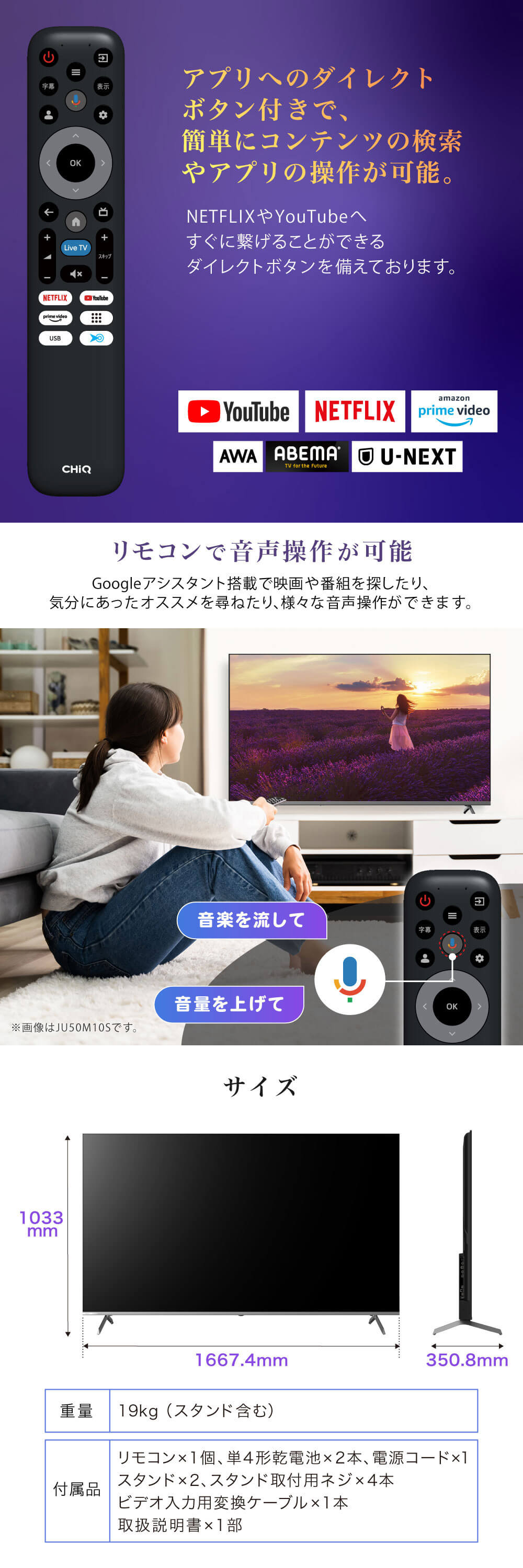 動画配信サービスの視聴に特化した「チューナーレス」スマートテレビ