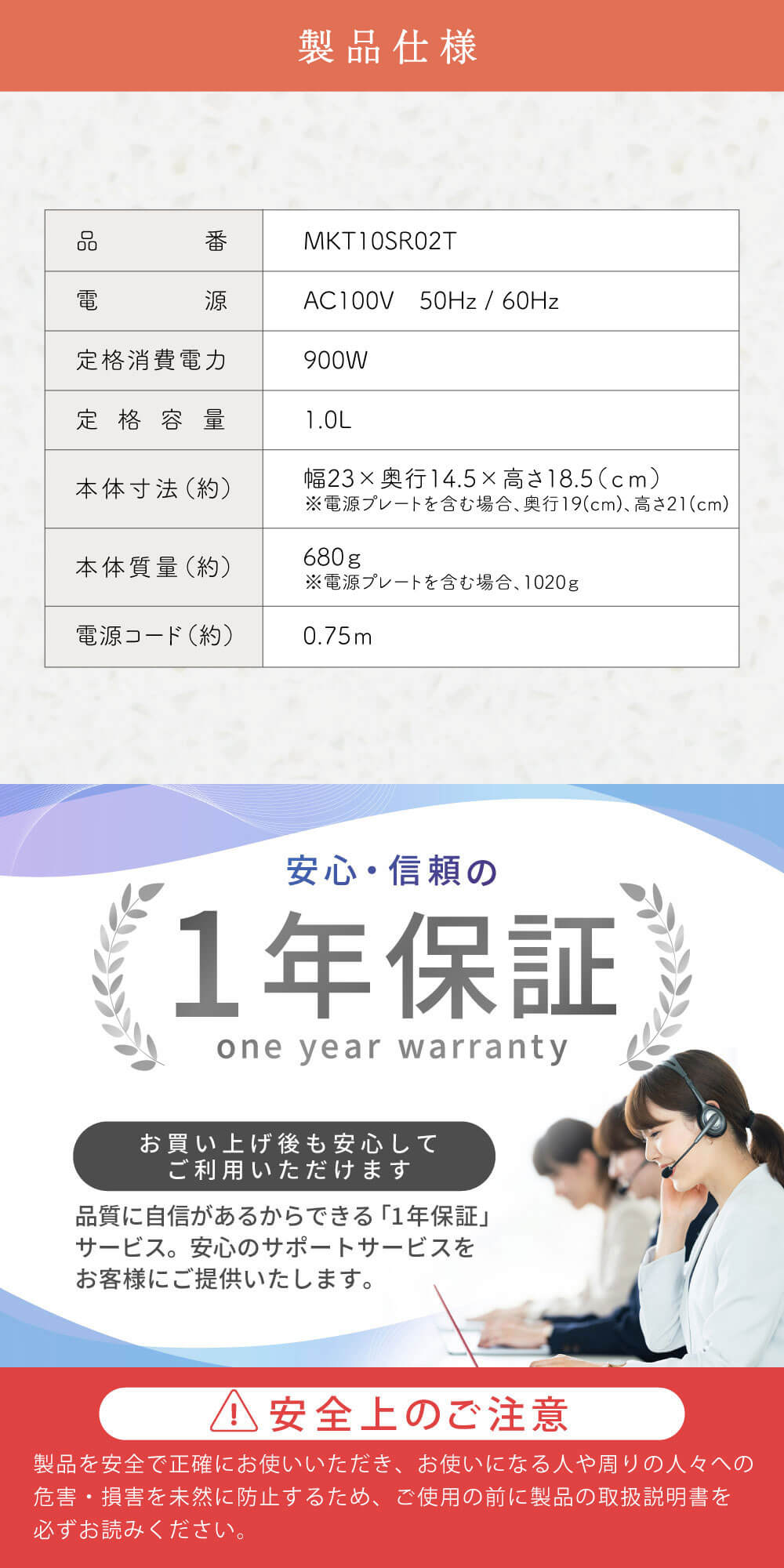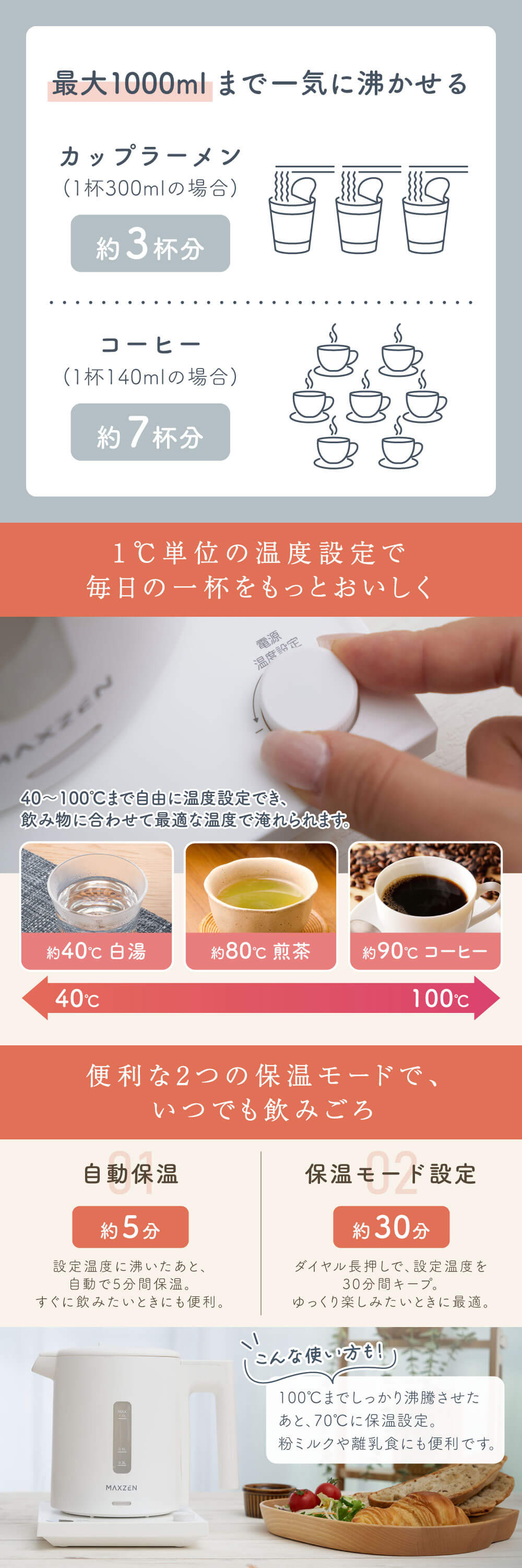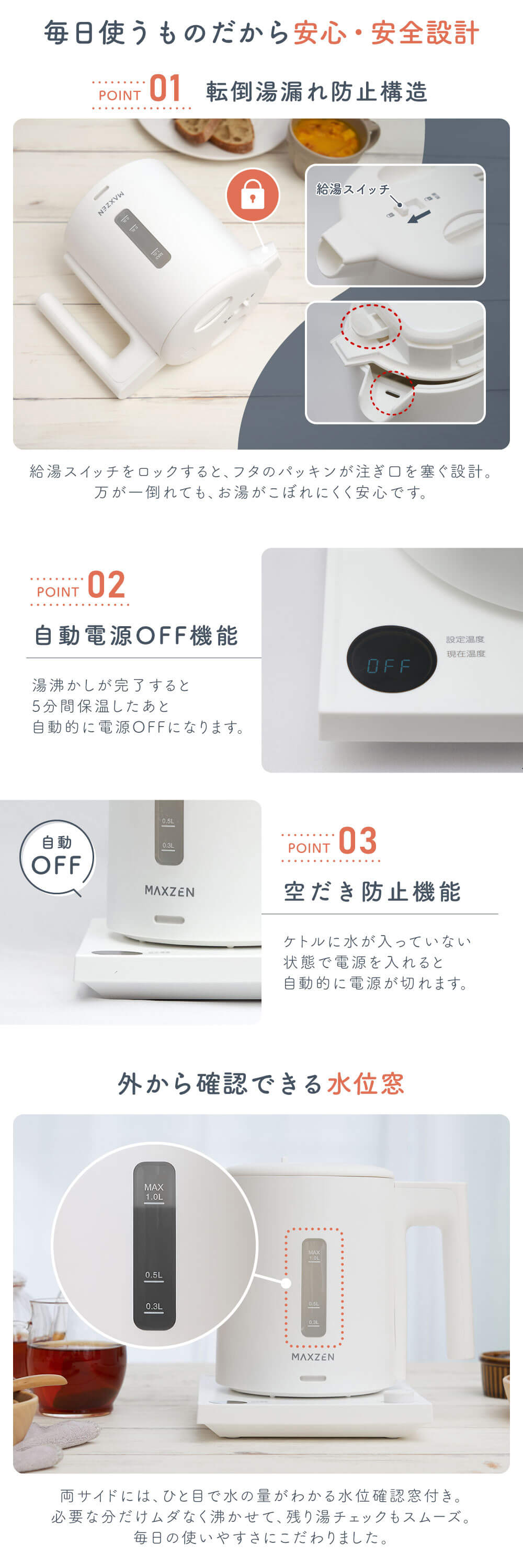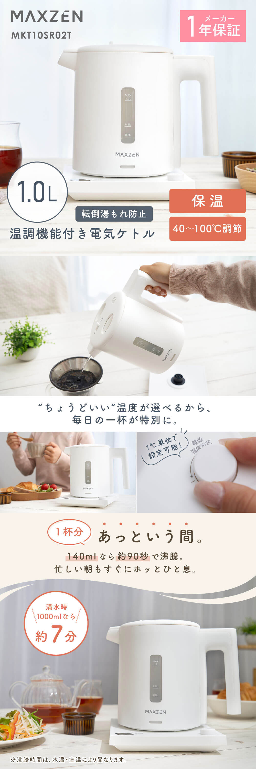 MAXZEN MKT10SR02T-WH ホワイト [温調機能付き電気ケトル(1.0L)]