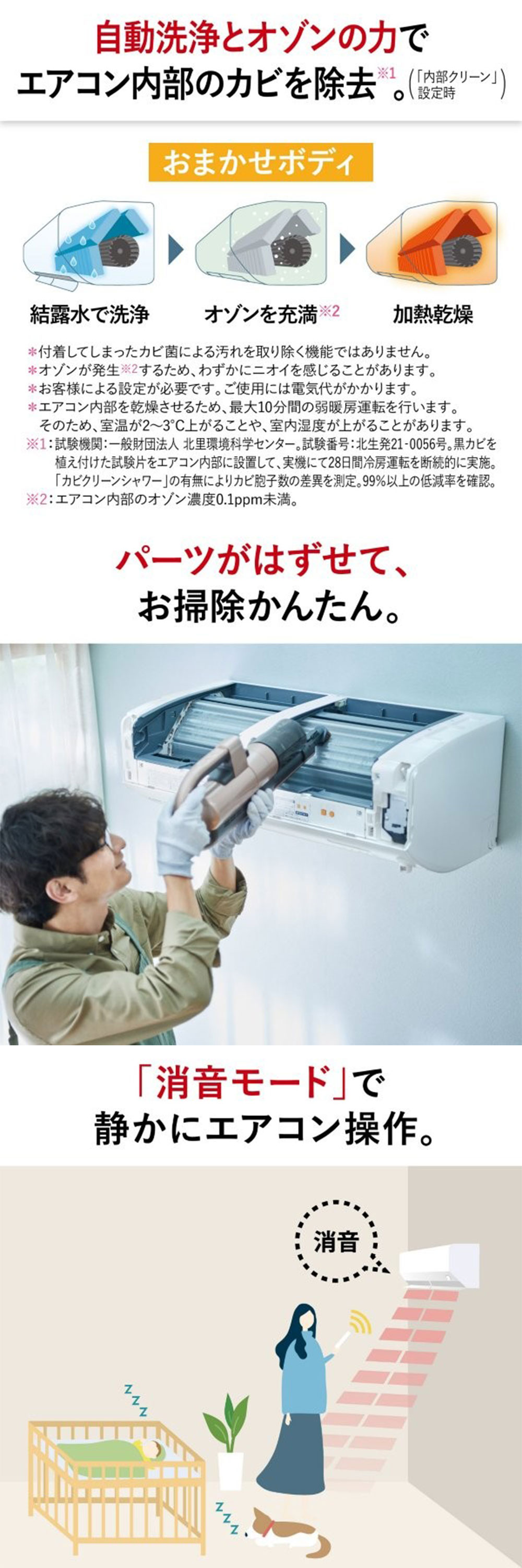 「おまかせボディ」でエアコン内部をカビから守ります。