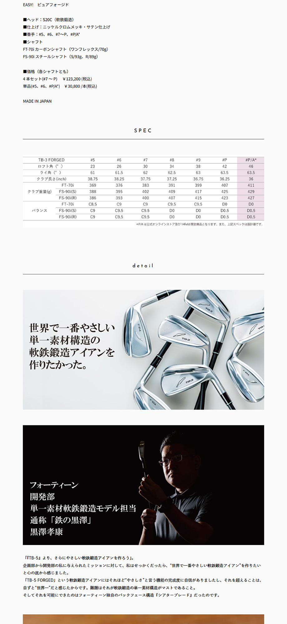 「TB-3 FORGED」と言う間違いなくフォーティーン史上、いや、単一素材構造のピュアな軟鉄鍛造アイアンにおいて最もやさしいモデルを開発するにあたって、とにかく難易度を極めたのはヘッドのさらなる軽量化と大型化にありました。