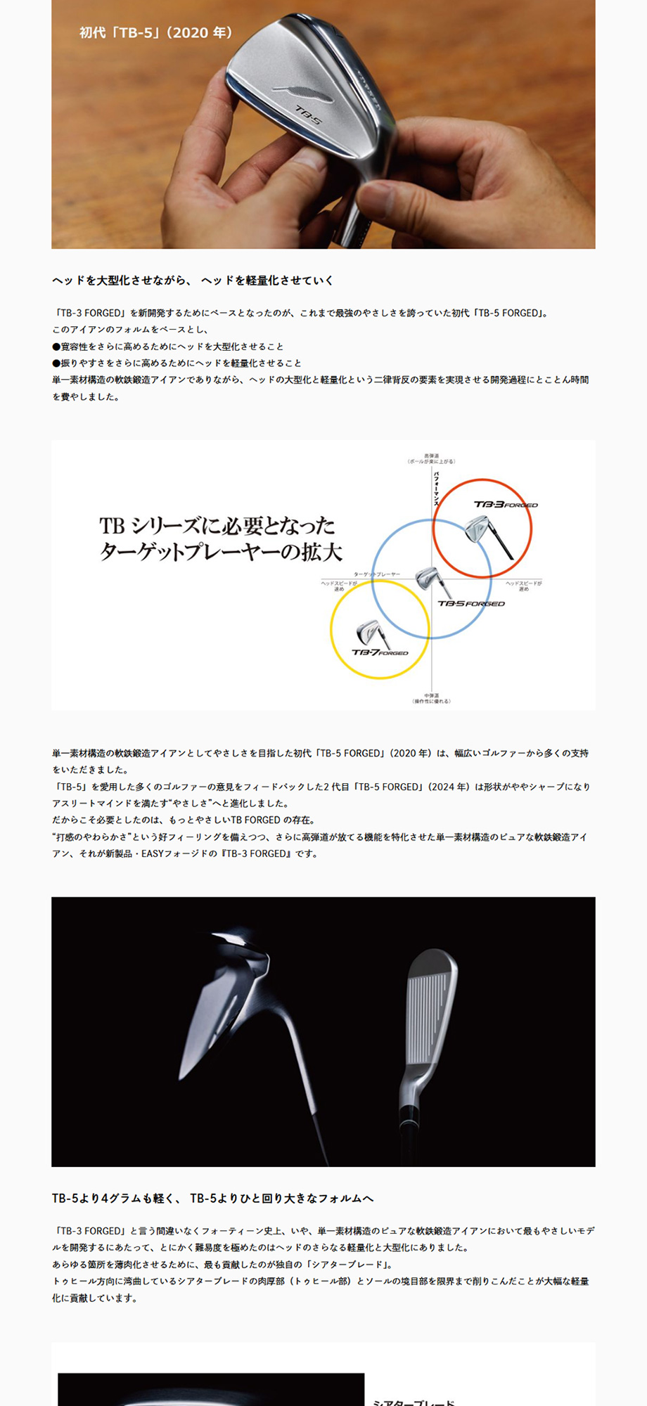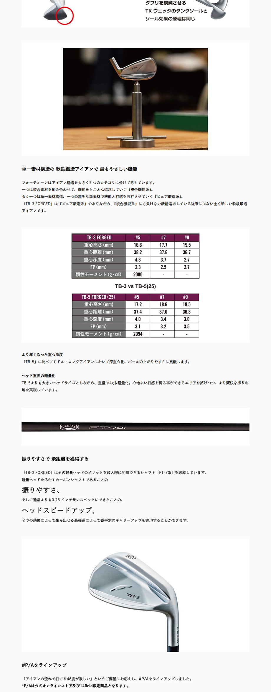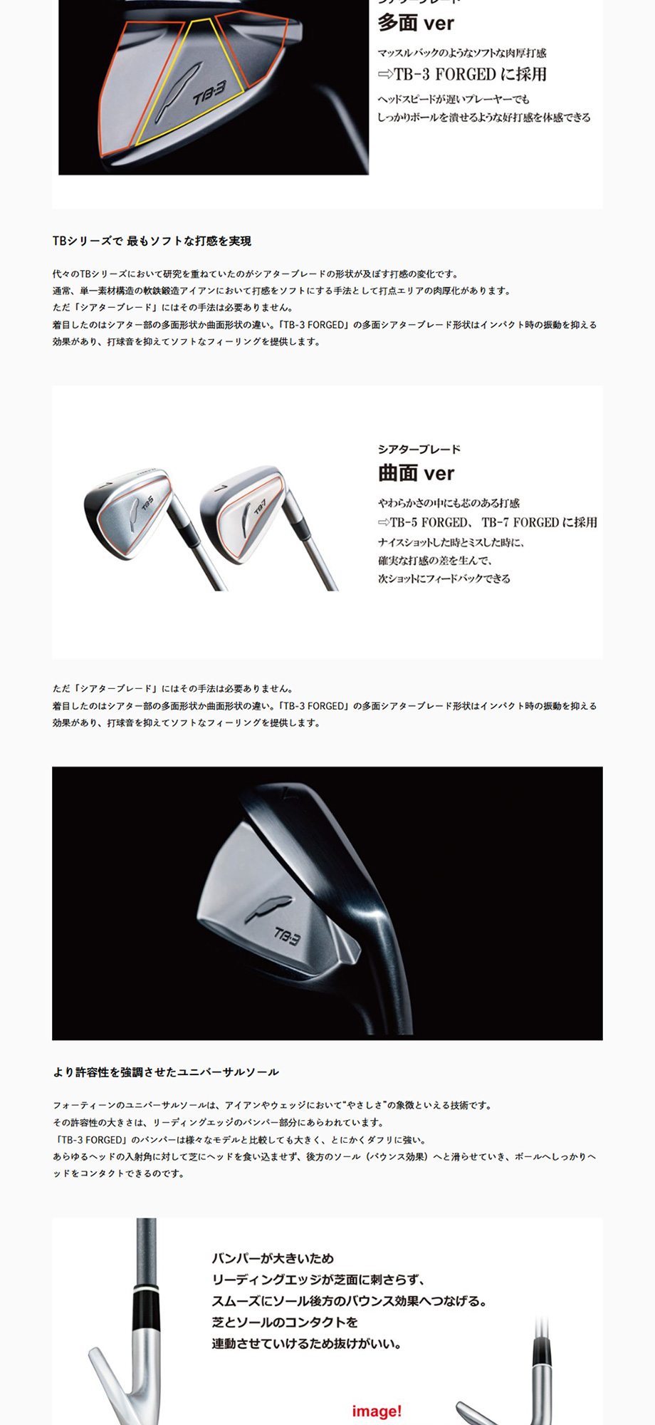 「TB-5」に比べてミドル・ロングアイアンにおいて深重心化。ボールの上がりやすさに貢献します。