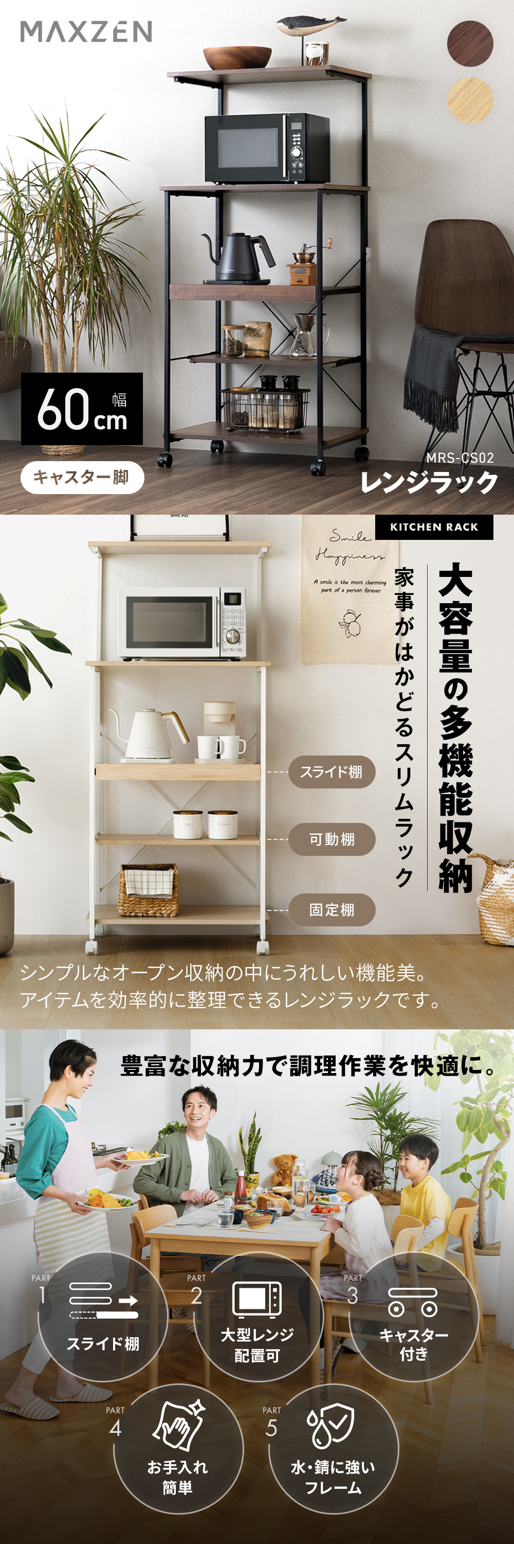 大容量の多機能収納 家事がはかどるスリムラック