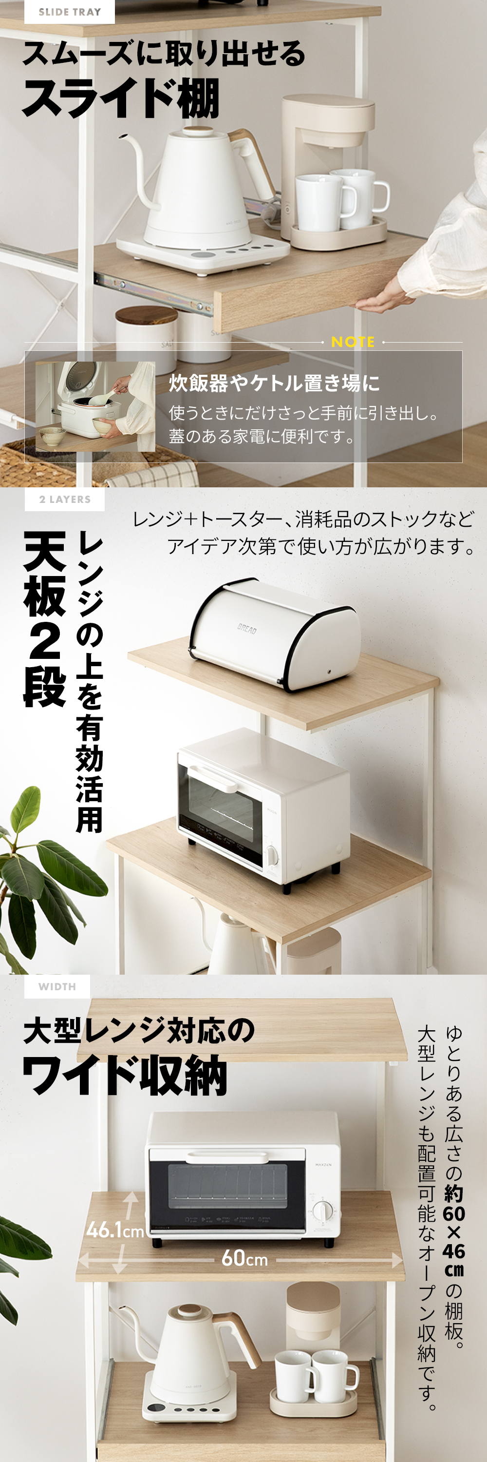 ★ 大型レンジ対応のワイド収納