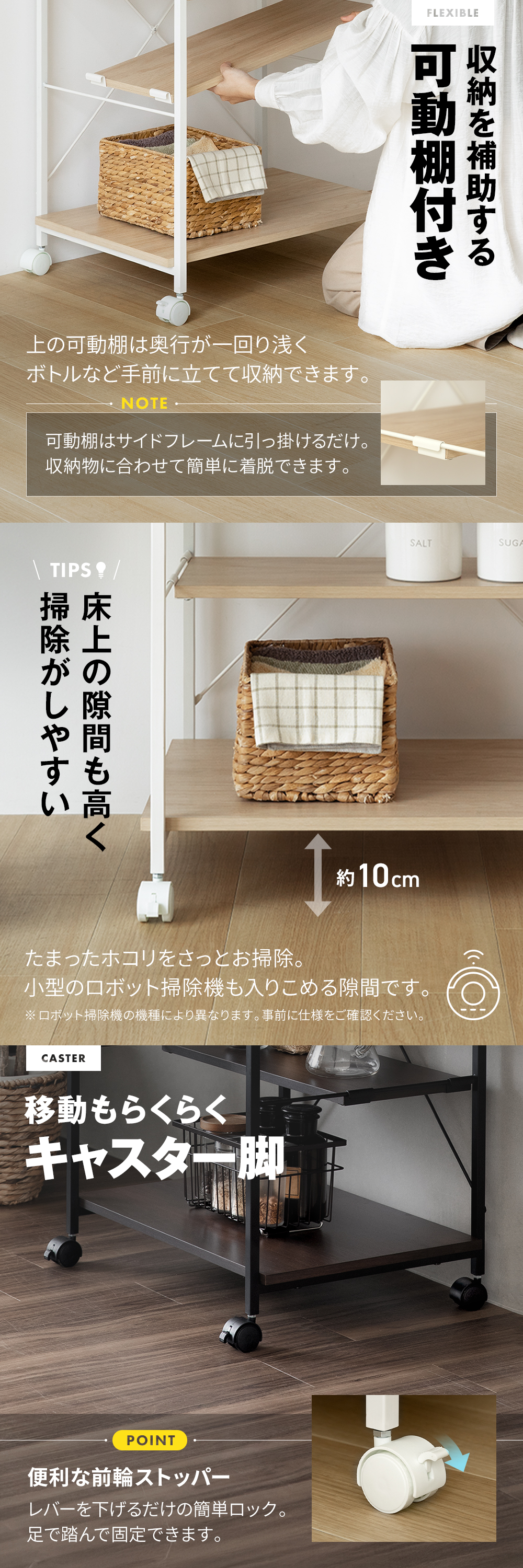 大容量の多機能収納 家事がはかどるスリムラック
