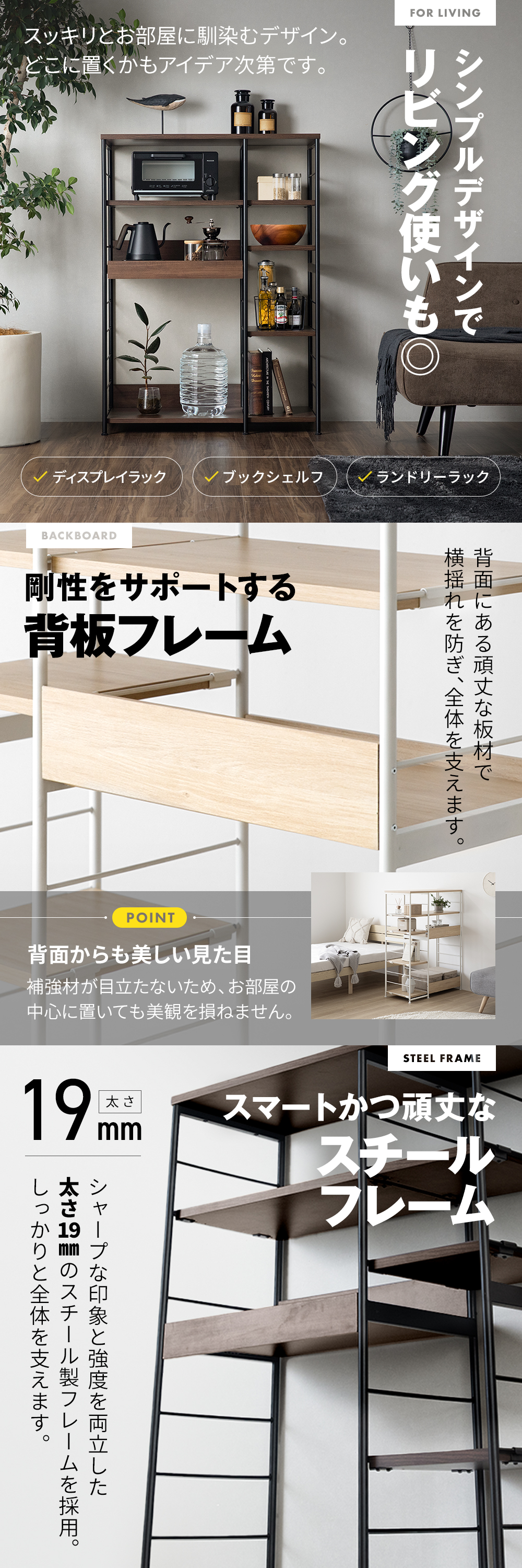 シャープな印象と強度を両立した太さ19mmのスチール製フレームを採用。しっかりと全体を支えます。