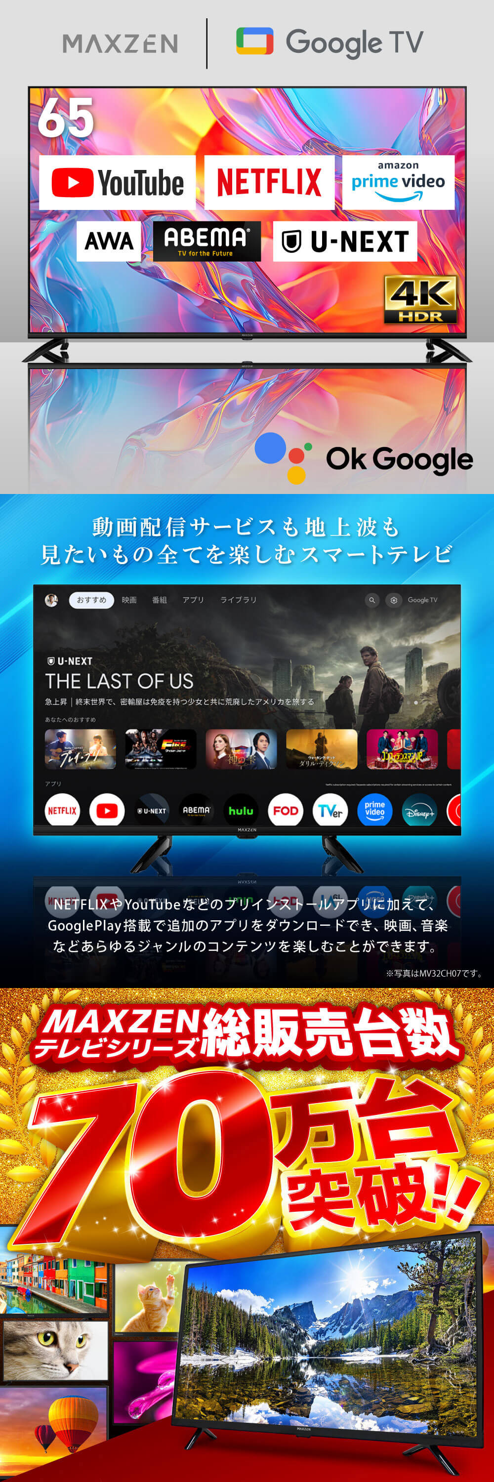 MAXZEN MVU65CH07 [65型 地上・BS・110度CSデジタル 4K対応 液晶テレビ]