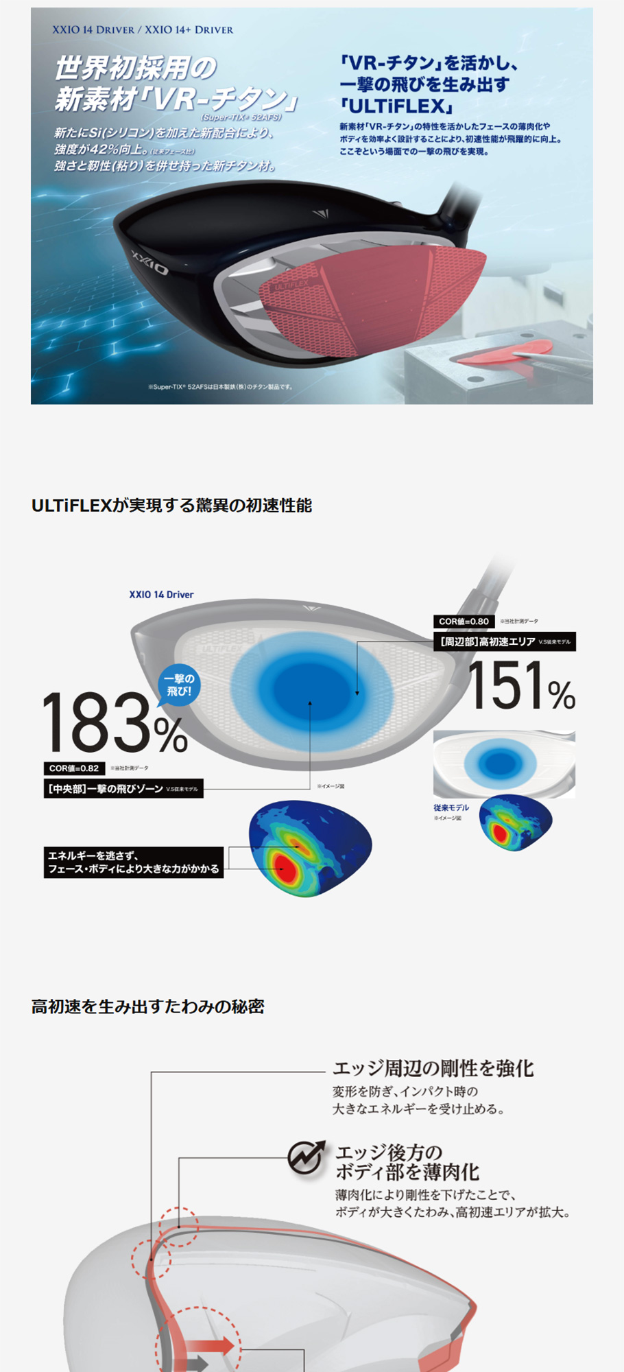 新素材「VR-チタン」の特性を活かしたフェースの薄肉化や、ボディを効率よく設計することにより、初速性能が飛躍的に向上。