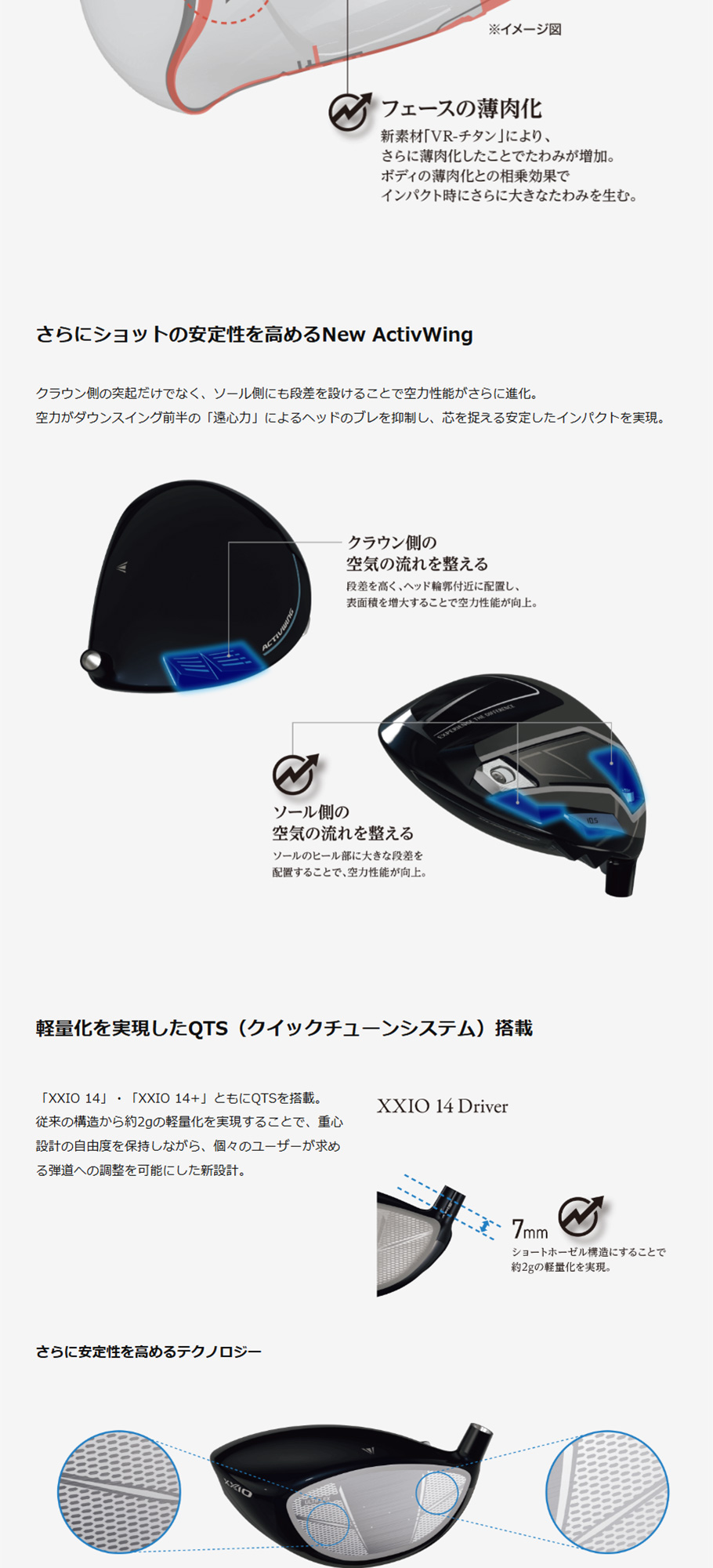 「XXIO 14」・「XXIO 14+」ともにQTSを搭載。