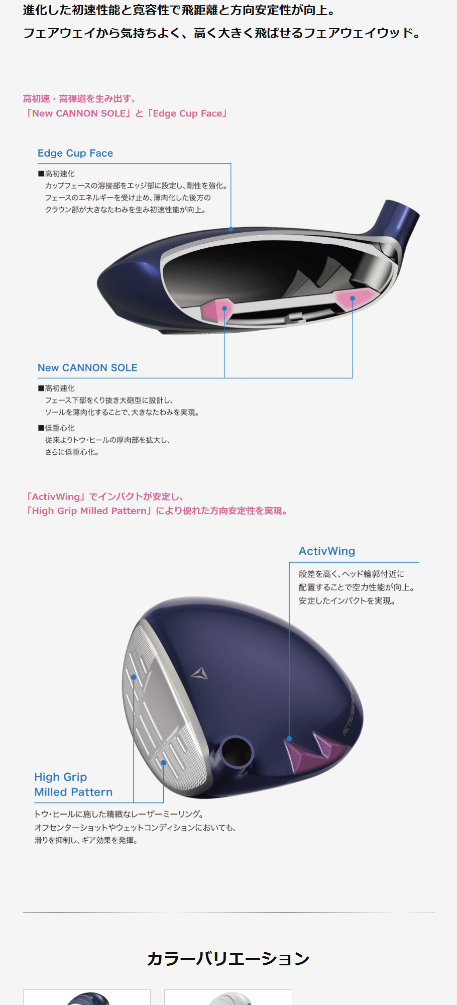 ★ 「ActivWing」でインパクトが安定し、「High Grip Milled Pattern」により優れた方向安定性を実現。