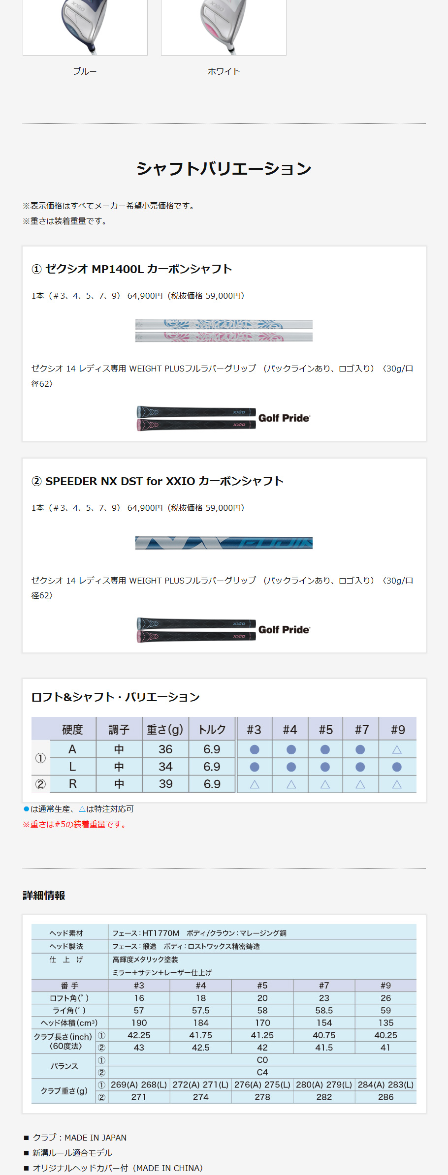 | ヘッド体積 | 170 cc |