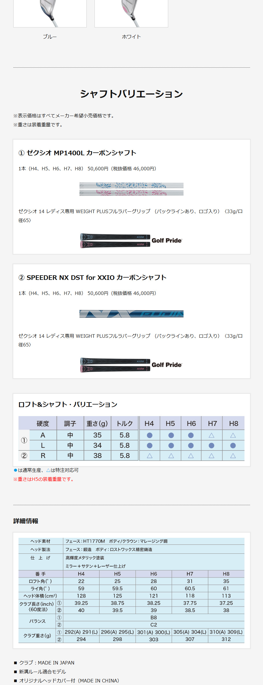 【日本正規品】 DUNLOP XXIO 14 レディス ブルー ハイブリッド 2026年モデル ゼクシオ MP1400L カーボンシャフト 5 A
