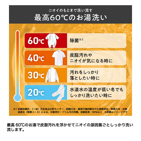 | 1回あたりのコスト(目安) | 洗濯時目安:20.4円(50Hz/60Hz) 洗濯乾燥時目安:60.2円(50Hz/60Hz) |