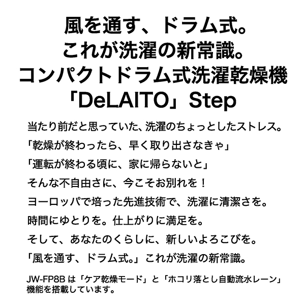 ハイアール JW-FP8B(W) ホワイト DeLAITO Step [ドラム式洗濯乾燥機 (洗濯8kg/乾燥4kg) 左開き]