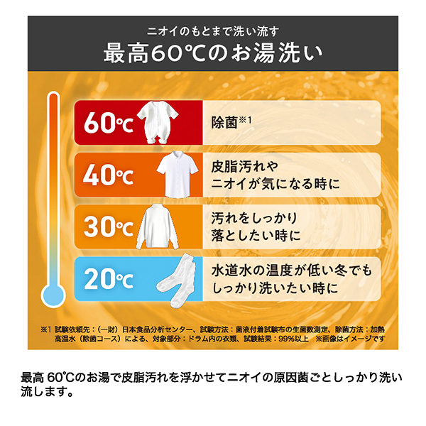 最高60℃のお湯で皮脂汚れを浮かせてニオイの原因菌ごとしっかり洗い流します。
