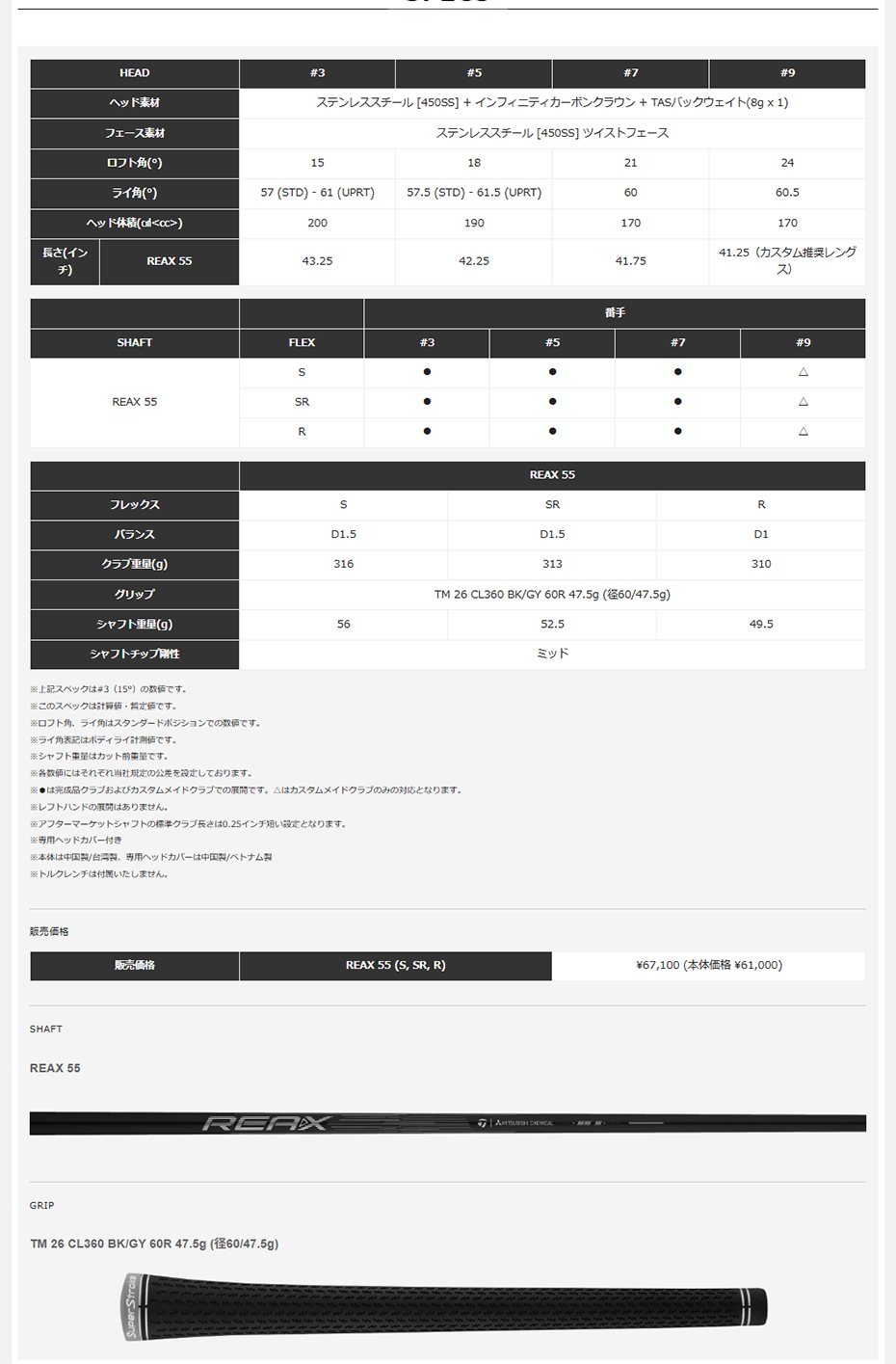 | ヘッド構造 | ボディ:ステンレススチール 450SS+インフィニティカーボンクラウン フェース:ステンレススチール 450SS |