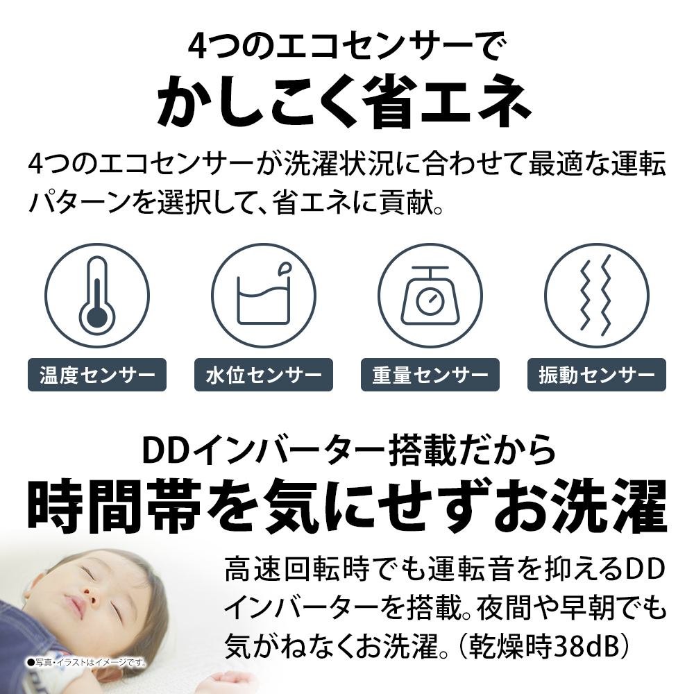 | 電気代(目安) | 洗濯時目安:1.7円(50Hz/60Hz) 洗濯乾燥時目安:43.2円(50Hz/60Hz) |