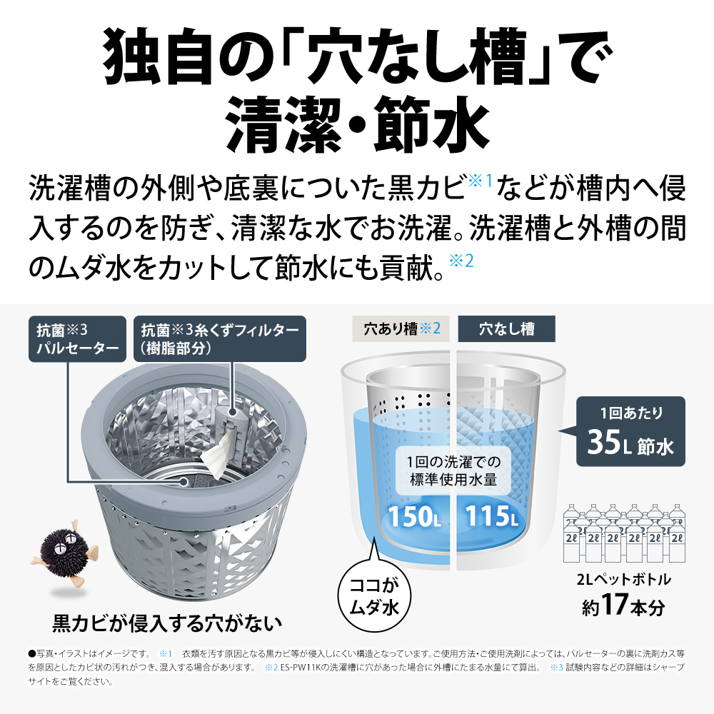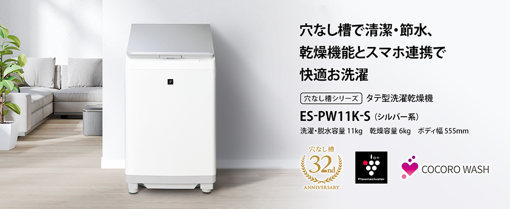 SHARP ES-PW11K-S シルバー系 穴なし槽 [縦型洗濯乾燥機 (洗濯11.0kg/乾燥6.0kg)]