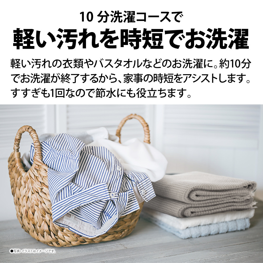 ワイシャツの黒ズミ汚れなどをしっかり落とす「温つけおき洗いコース」や、軽い汚れをスピーディに洗う「10分洗濯コース」など、使い分けることで日々のお洗濯がより快適になります。