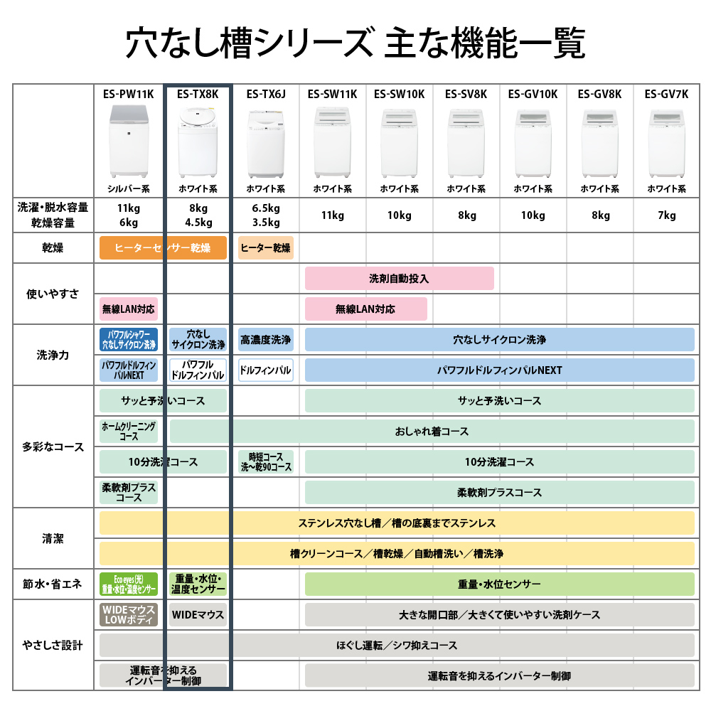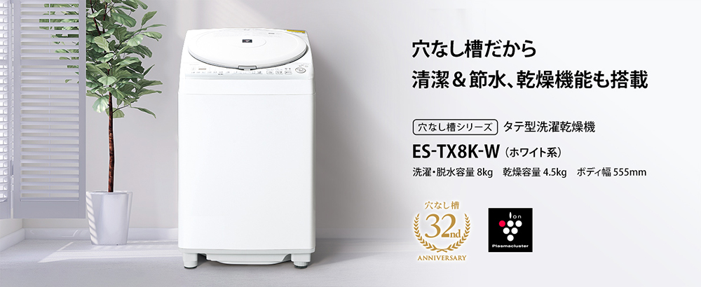 SHARP ES-TX8K-W ホワイト系 穴なし槽 [縦型洗濯乾燥機 (洗濯8.0kg/乾燥4.5kg)]