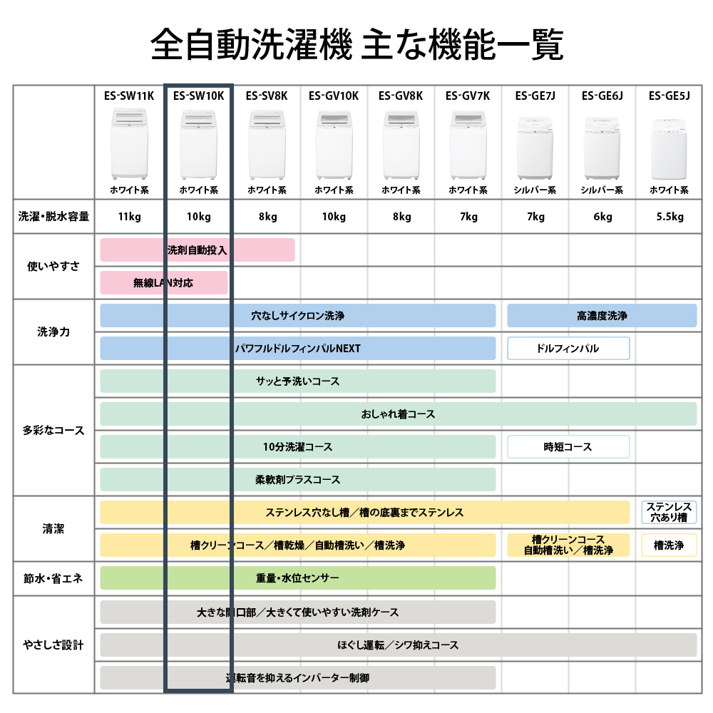 SHARP ES-SW10K-W ホワイト系 穴なし槽 [全自動洗濯機 (10.0kg)]