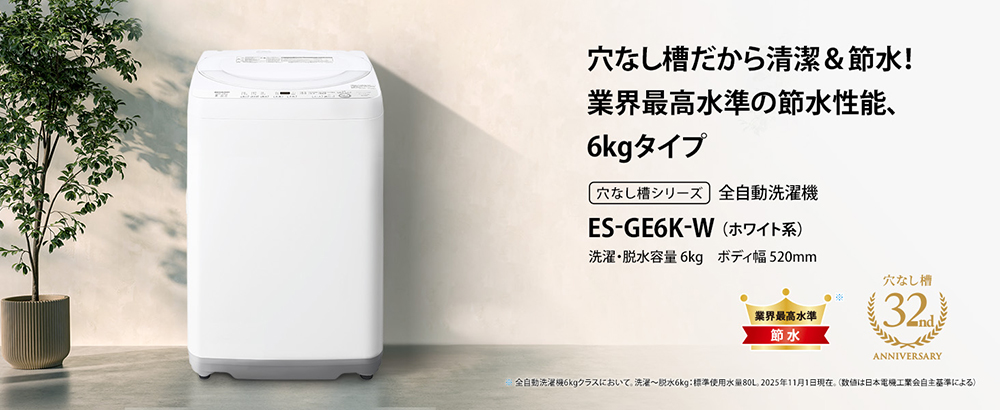 SHARP ES-GE6K-W ホワイト系 穴なし槽 [全自動洗濯機 (6.0kg)]