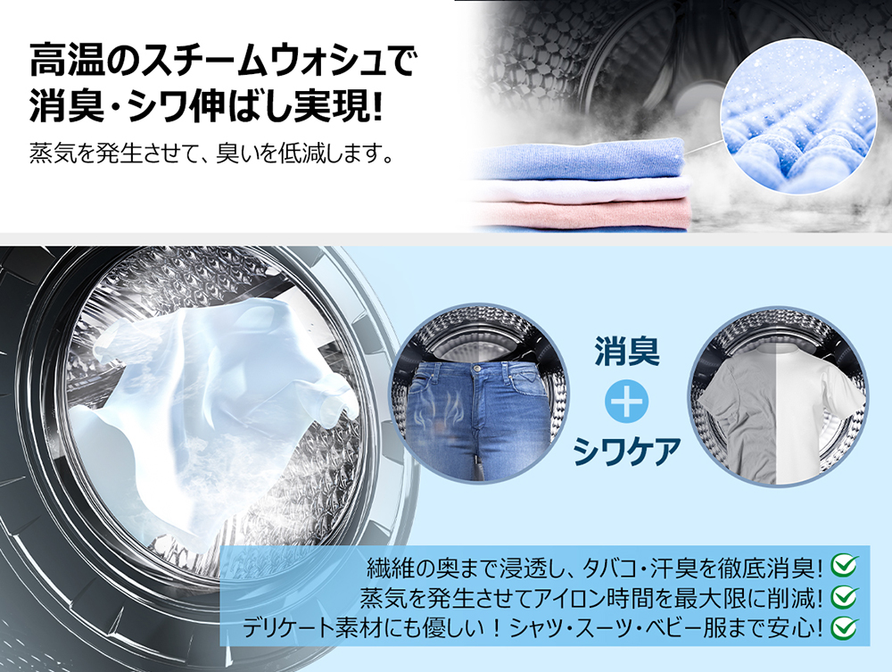 高温スチームの力で、衣類に付着したニオイや雑菌をしっかり除去。